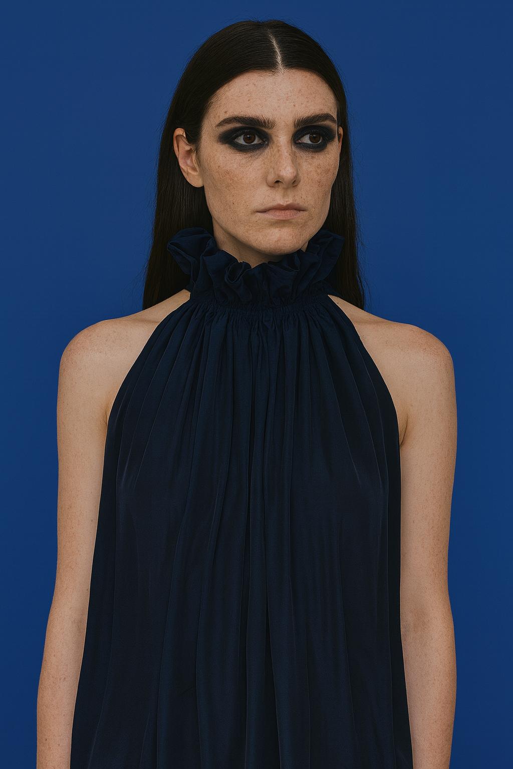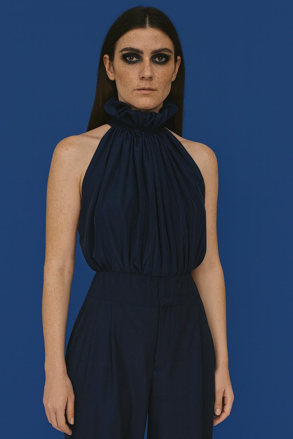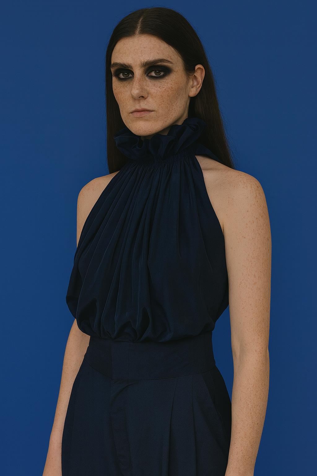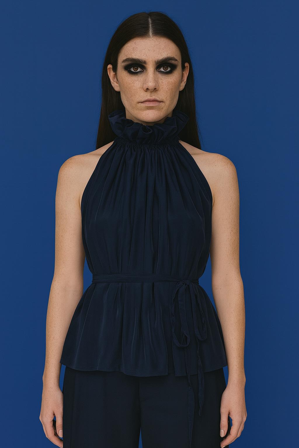Řasená halenka essential. Zavazování je na zadním díle, kde se sbíhá do řaseného zdobení. Ready-to-wear